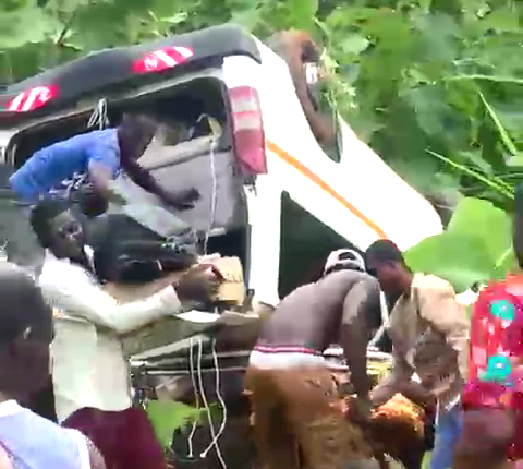According to the eyewitness, in an attempt to avoid head-on collision, the minibus driver veered off the road and somersaulted. No casualty was recorded but the occupants sustained a varied degree of injuries.